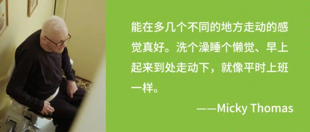 不止是Micky Thomas,自20世纪60年代起瀚德凯尔(Handicare)座椅电梯就开始帮助移动有困难的人们和残障群体提高居家生活移动的便利性,让“上下楼”回归日常。