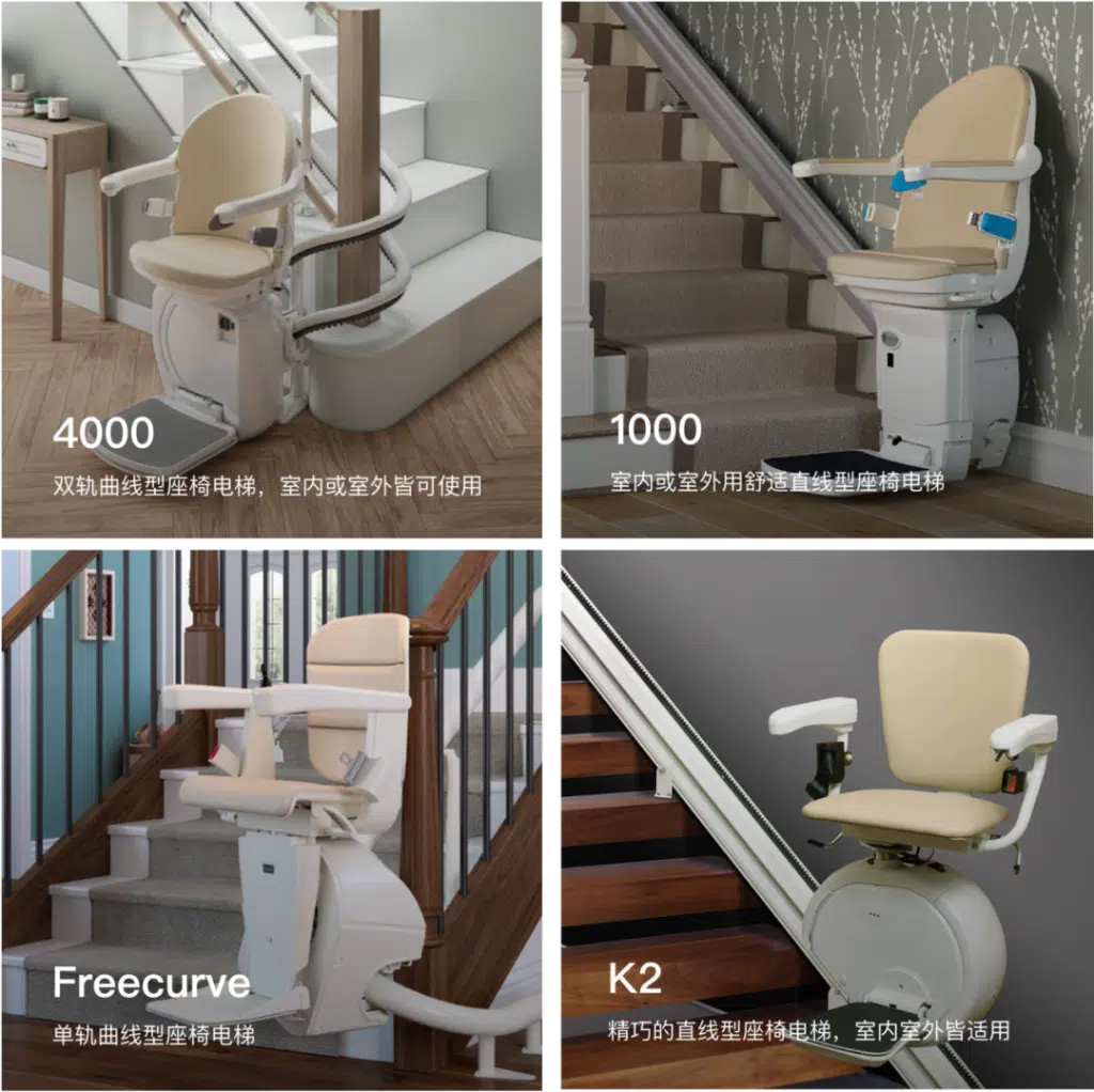 除安全性和用户舒适度的改进外,我们也跟随市场需求变化提供更多的款式、装潢和扶手颜色以满足不同的住宅风格需求。