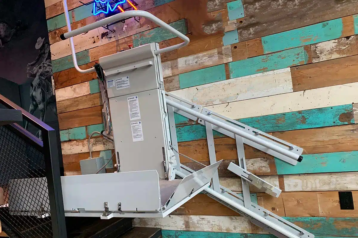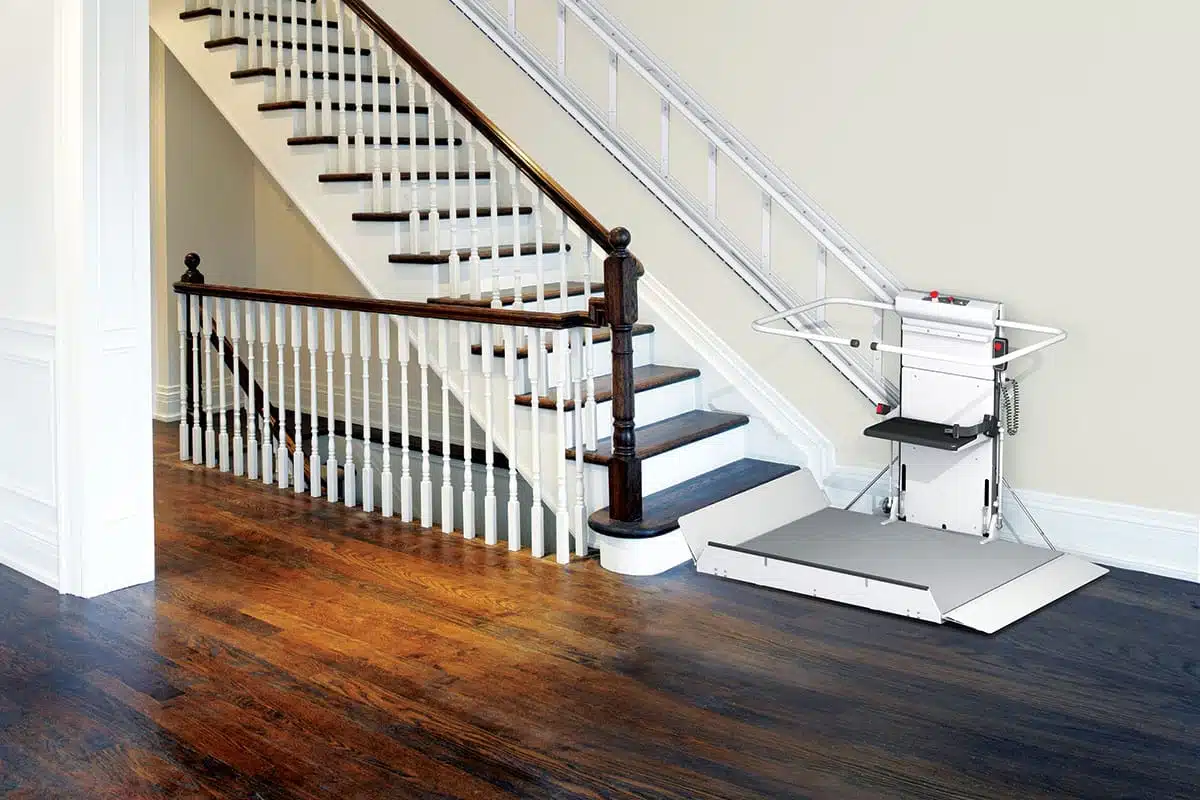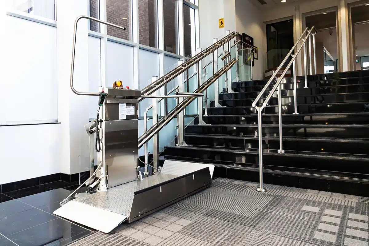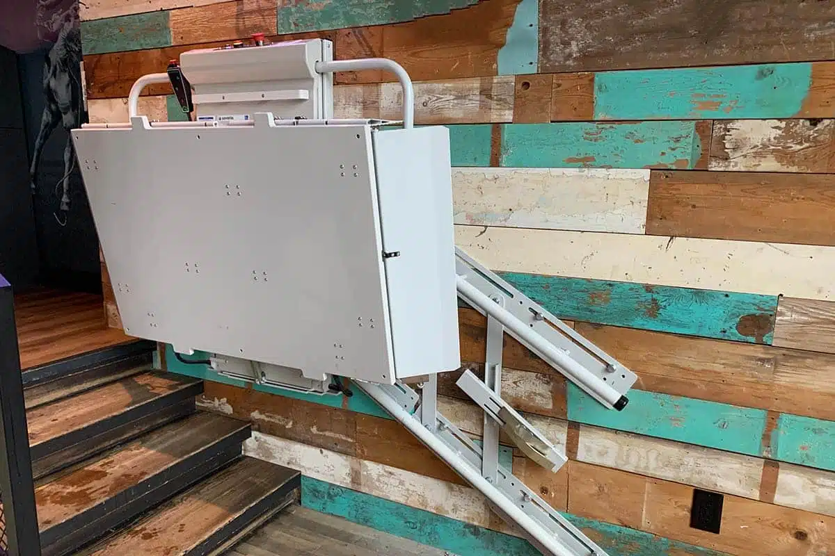 Delta斜挂式轮椅升降平台配置了模块化导轨系统,可承载乘客上下直线型楼梯。 未使用时,该设备可倚靠墙壁紧凑地折叠起来,尽可能为楼梯腾出更多空间。 Delta轮椅升降平台所需的施工量极小,备受社区中心、学校和家庭青睐。