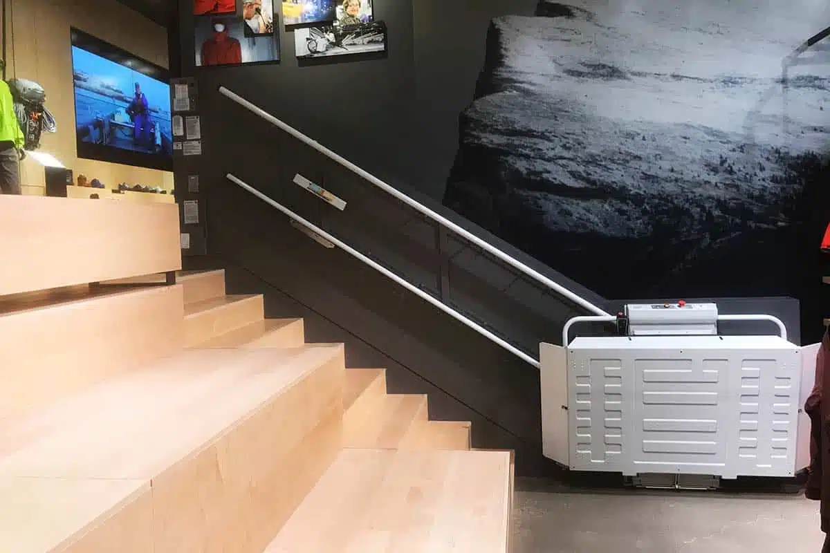 通过电池运行,充电站位于楼梯顶部和底部。即使停电,升降平台也能继续运行。 有四种平台尺寸和折叠座椅、自动折叠/展开平台等功能可供选择;提供商业用途的公共建筑套餐选项。