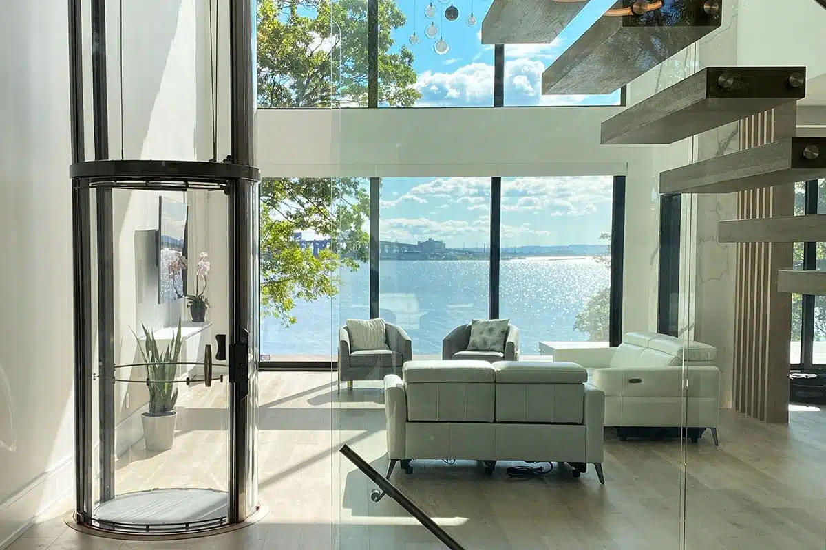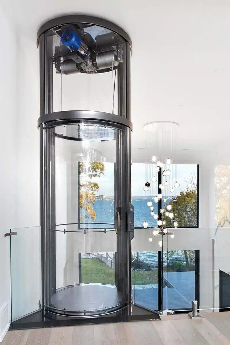 Vuelift迷你款圆形电梯和具有相似功能的传统住宅电梯安装成本相当,但却更加美观、更加便利且具有更多功能。
