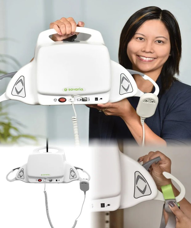 便携式天轨悬吊移位机专为居家移动困难的用户而设计,采用锂电池系统提供升降动力,产品自重仅5公斤,可承载最高200公斤负重;简洁直观的上下指令设计,护理搬运简单易上手,与萨瓦瑞亚龙门架配合使用,无固定导轨环境下也可轻松移动病人。